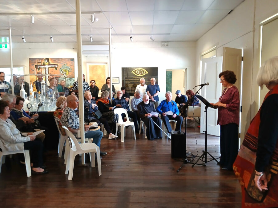 Abbot John began by acknowledging the Yued tradition associated with New Norcia, descendants of the Lanigan family who lived in the building and who ran the store for many years, Mandorla founders, patrons, board members, and artists.